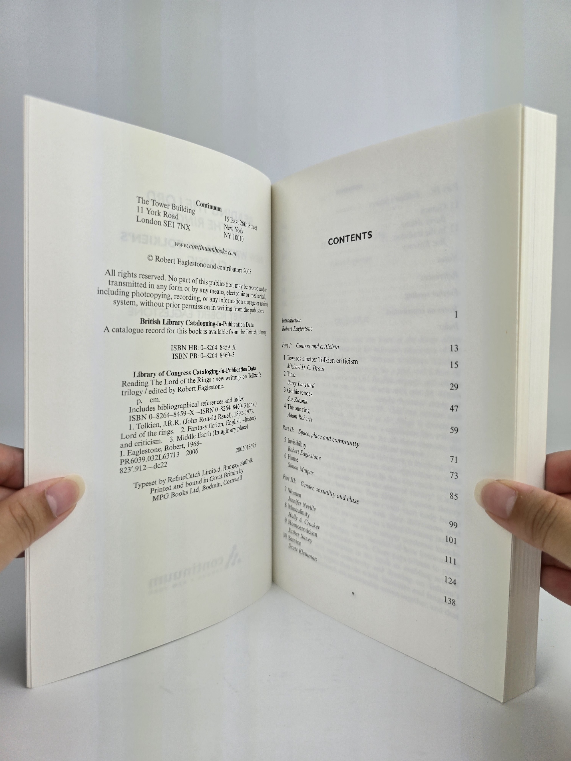Rare "In Lieu of Galleys" advance reading copy of Reading The Lord of the Rings, edited by Robert Eaglestone. Issued by Continuum in 2005, this pre-publication proof features early interior layouts and mockup sticker.