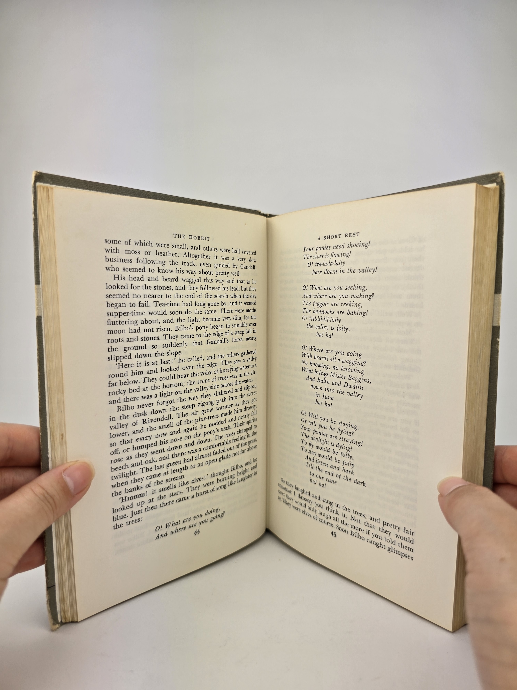 The volume contains the full text of The Hobbit together with both of Tolkien’s maps: