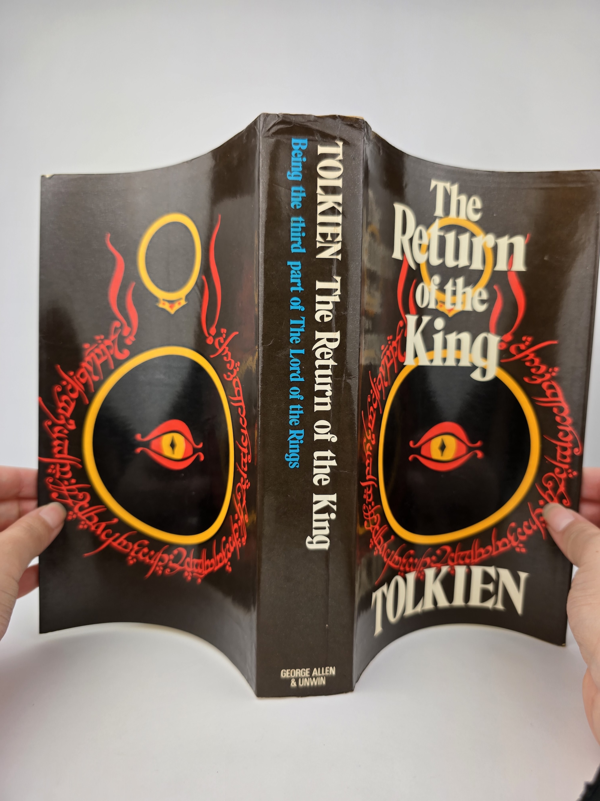 The Return of the King (10th impression, 1978) shows a little rubbing and a small crease to the spine head, otherwise clean and bright. The fold-out map of Gondor and Mordor is present, undamaged.