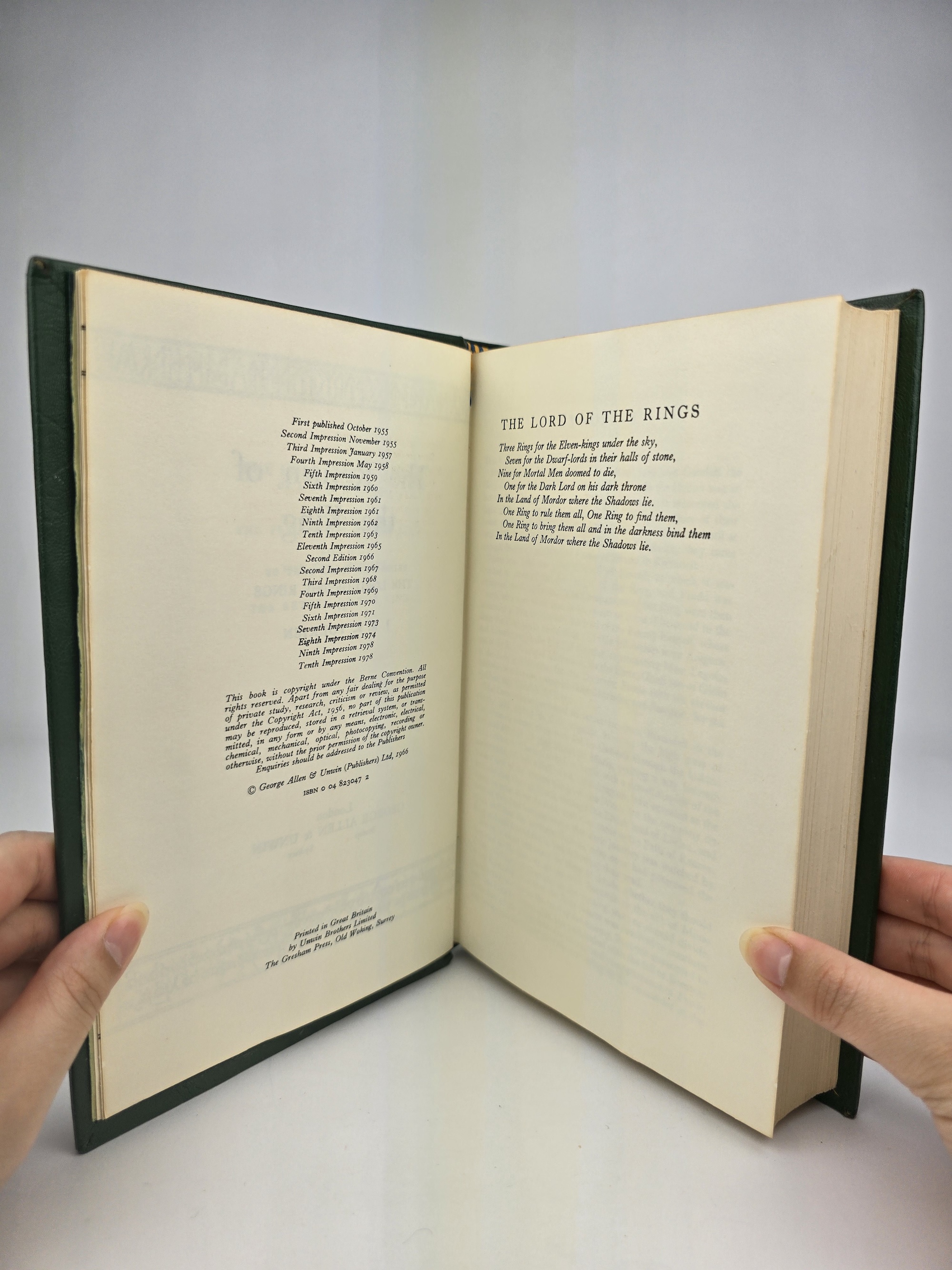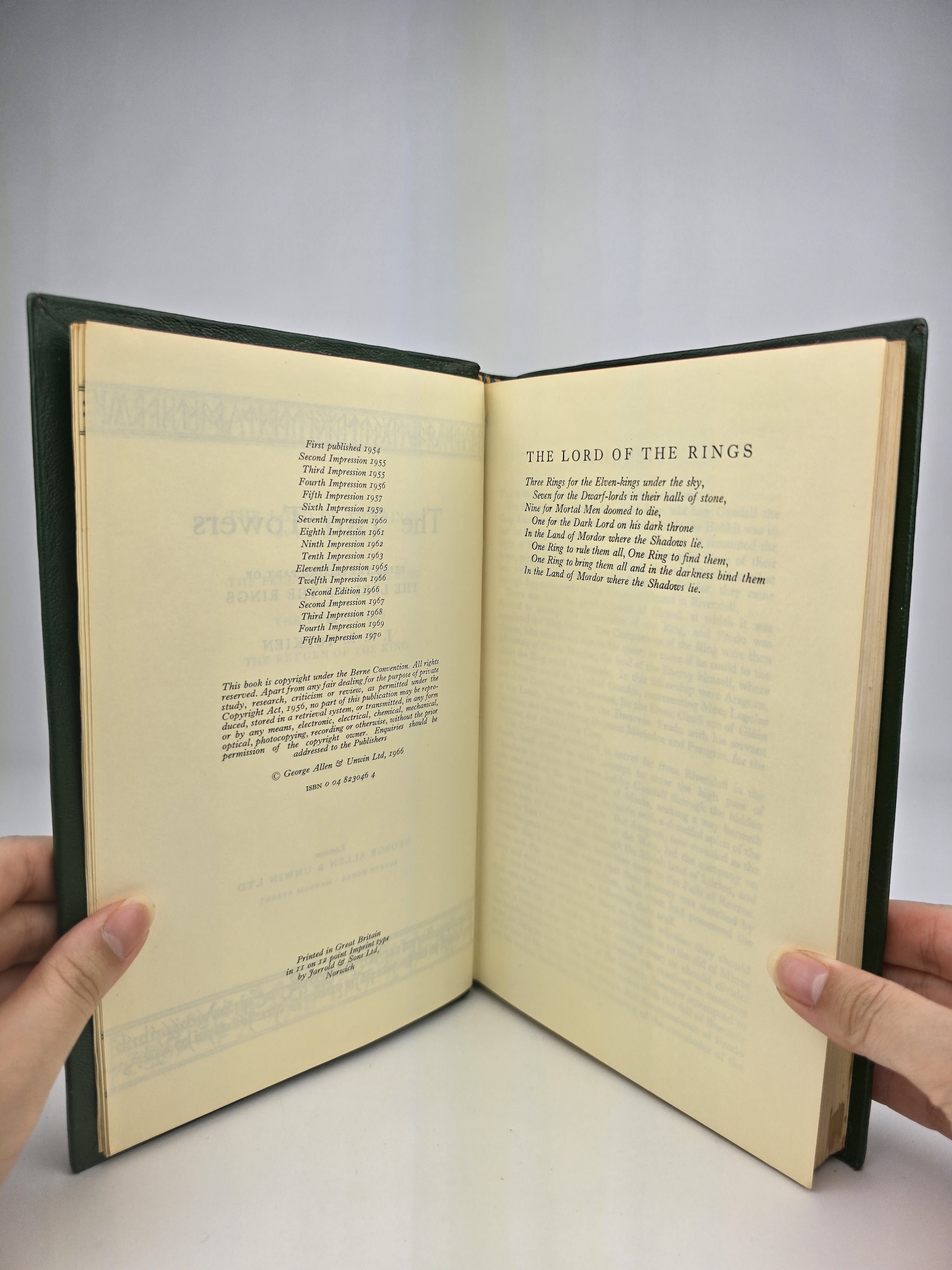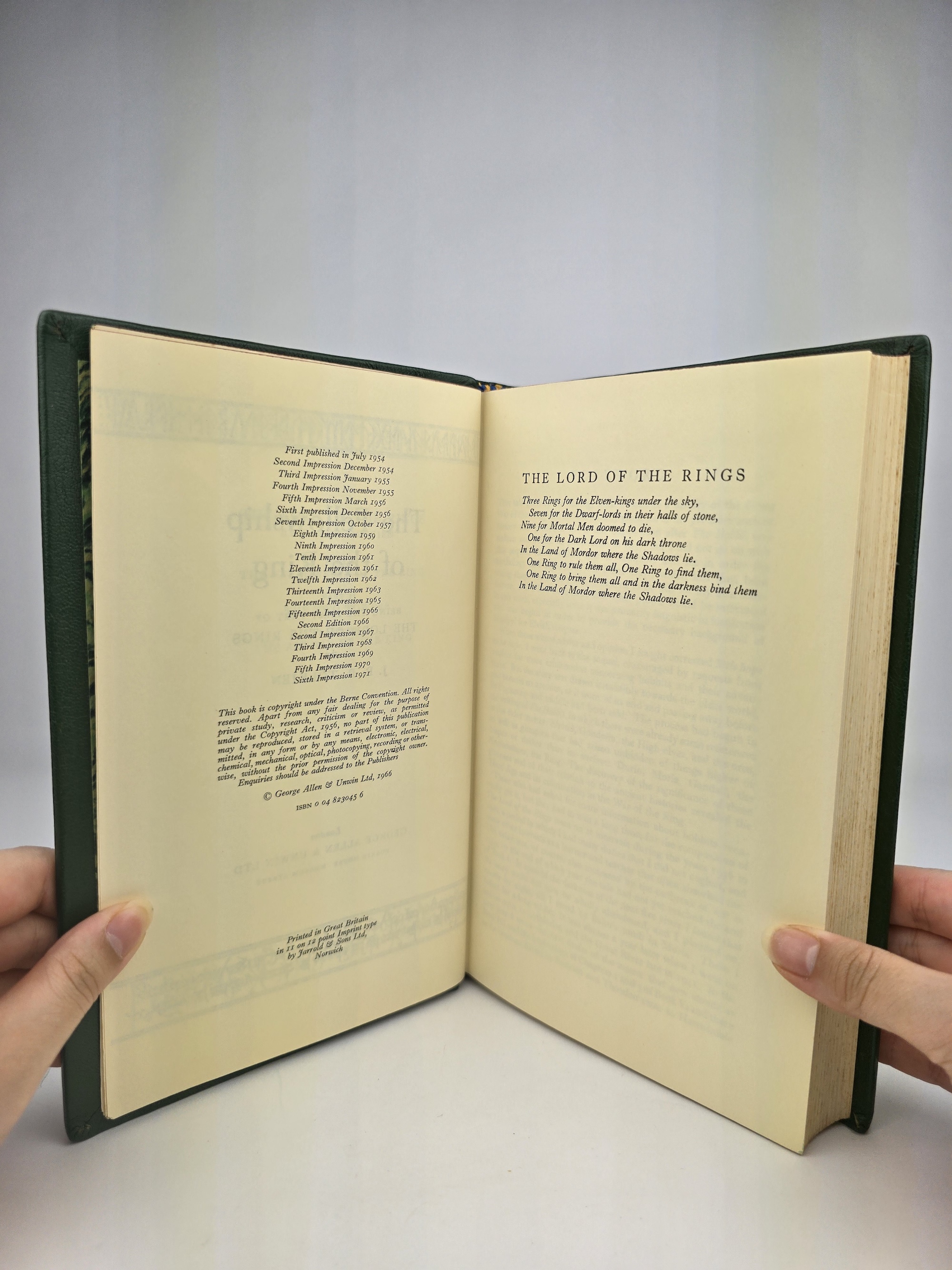 A finely rebound set of the UK Second Edition of The Lord of the Rings, consisting of the following impressions: Fellowship of the Ring (6th impression, 1971), The Two Towers (5th impression, 1970), and The Return of the King (10th impression, 1978).