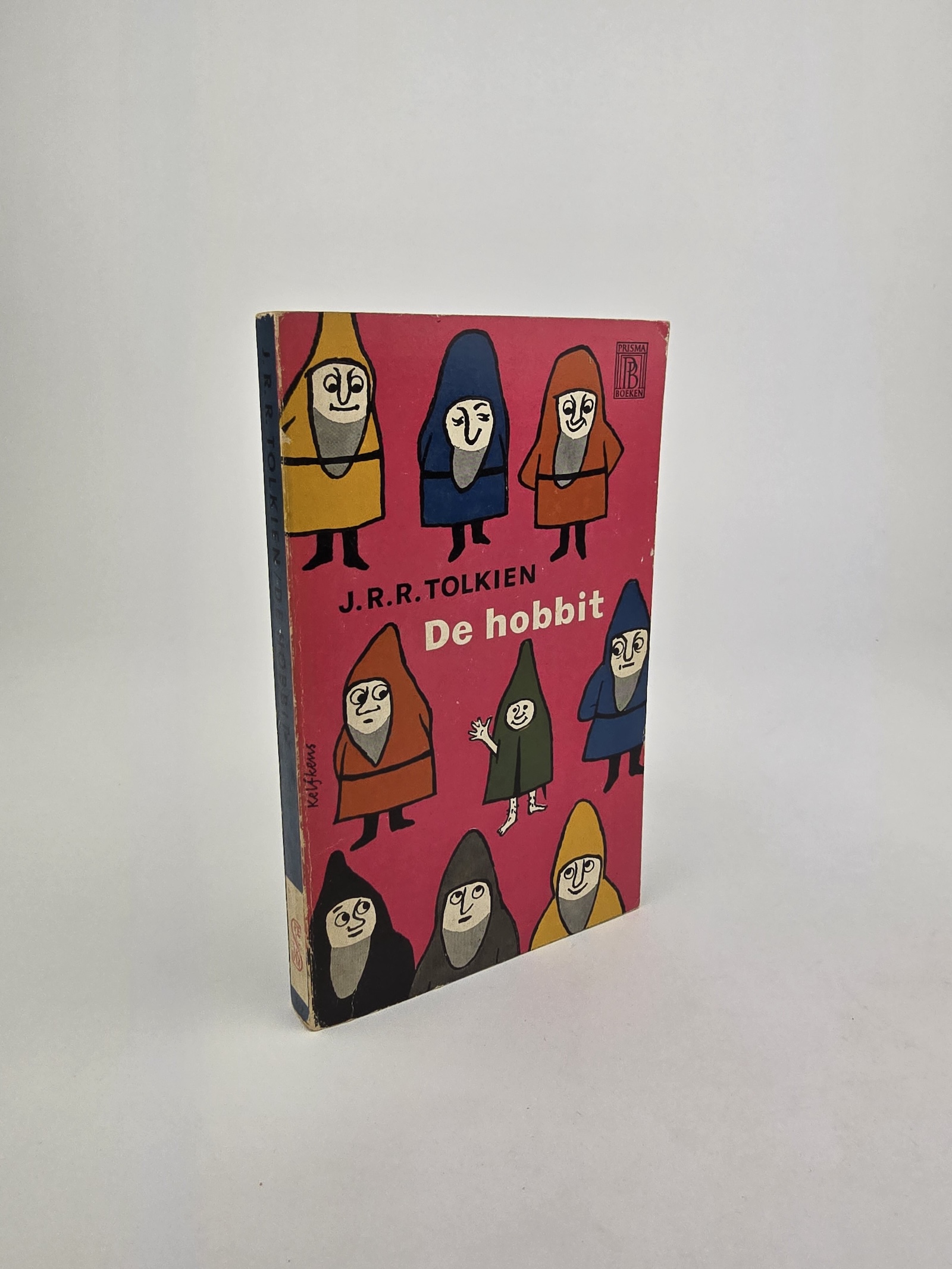 This rare first printing of De Hobbit in Dutch presents J.R.R. Tolkien’s beloved story in a unique translation by Max Schuchart. This edition is notable for its vibrant cover, designed by Cees Kelfkens, featuring whimsical illustrations of dwarves and Bilbo on a striking pink background. Part of Prisma’s popular series, this edition brings together Tolkien’s adventure with Dutch cultural flair.