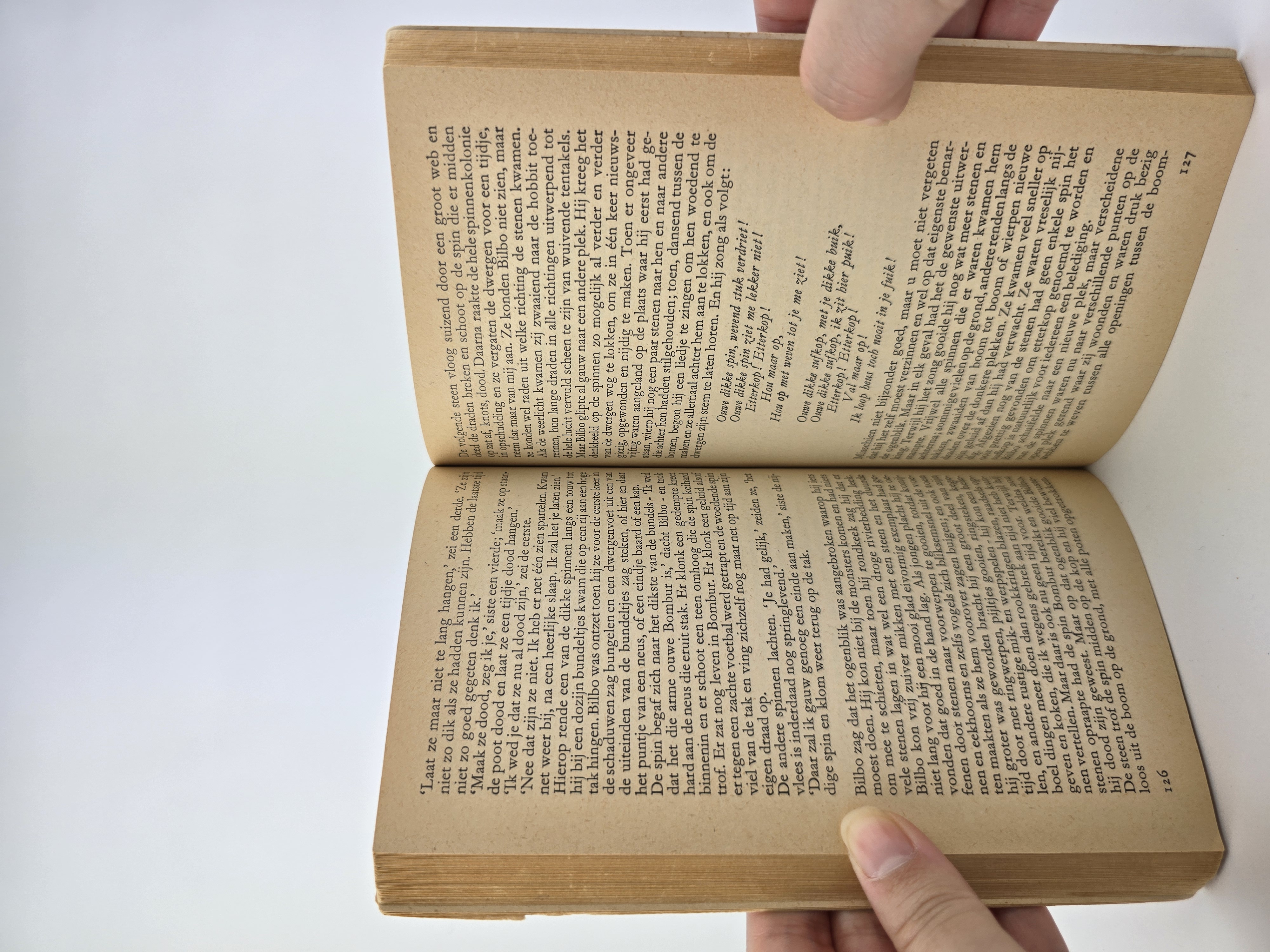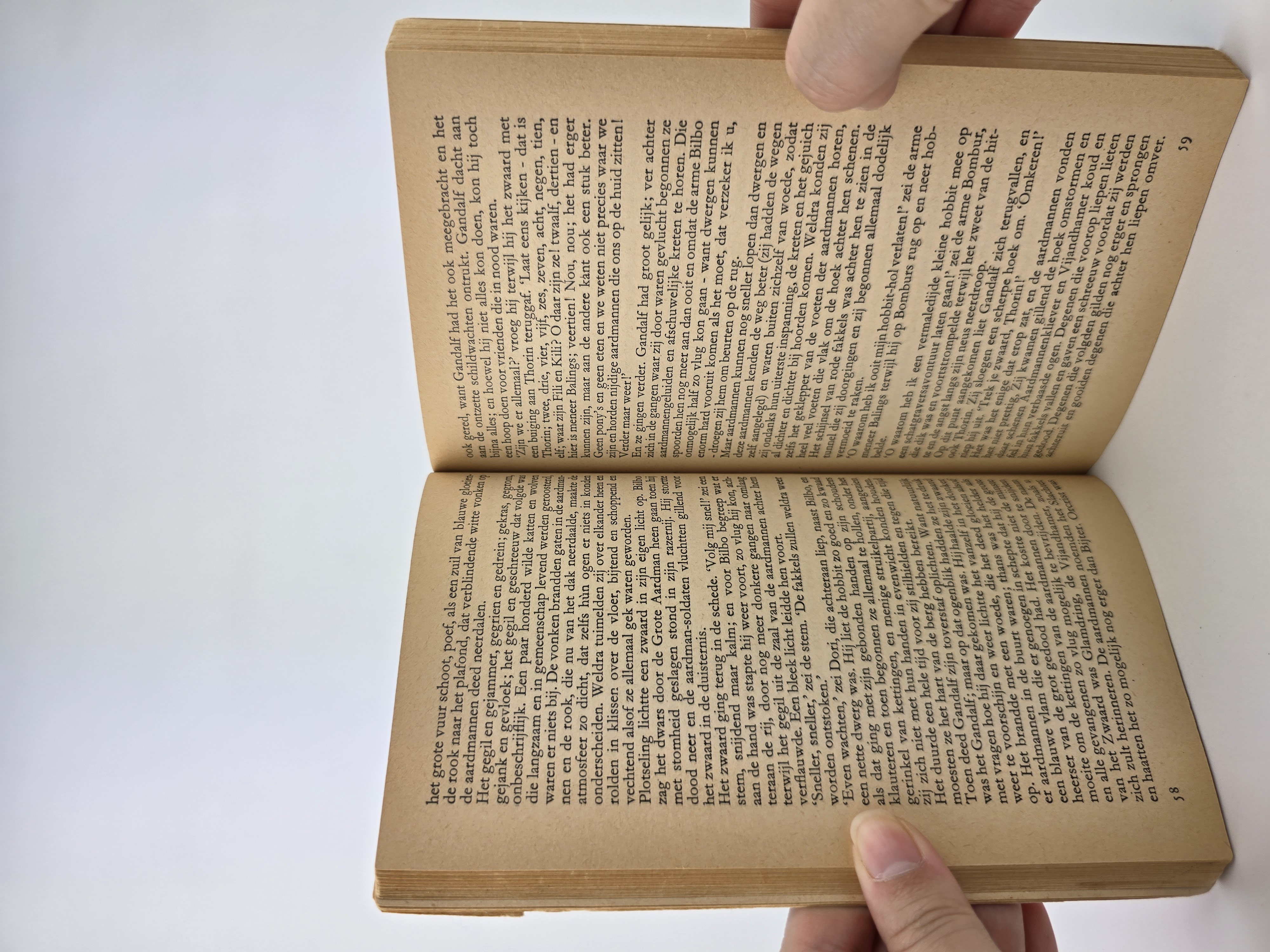 Despite the wear, it remains a legitimate early Dutch Hobbit printing with its original cover art — a budget entry for collectors or completionists.