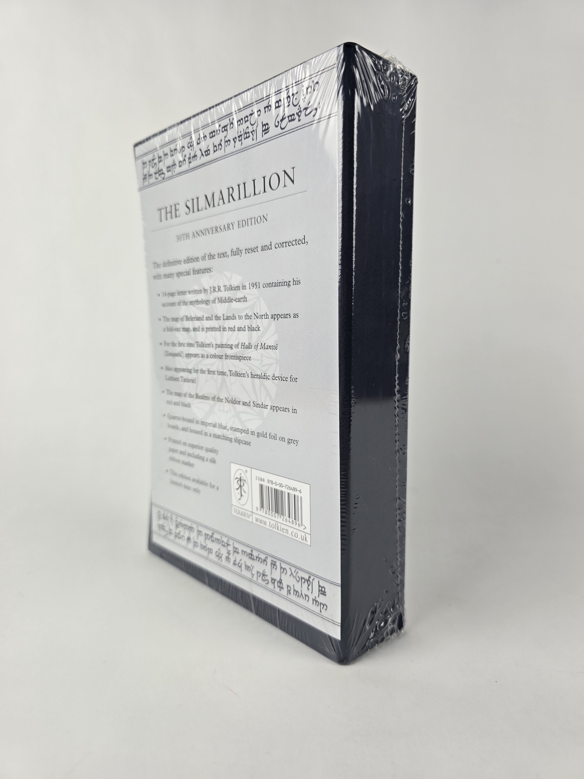 Published by HarperCollins in 2007, this de luxe edition of The Silmarillion marks the 30th anniversary of the original 1977 release. It includes enhanced content, newly reset text, and maps in red and black. It also features Tolkien’s rare 1951 letter explaining the mythological background of Middle-earth. Beautifully bound and housed in a slipcase bearing a gold rendition of the heraldic symbol of Lúthien Tinúviel, this is the ultimate presentation of one of Tolkien’s most profound works.